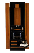 自分の姿が映り込む程の抜群の光沢に、カッコいいデザインを目指したスマートなフォルムが特徴的な家具調仏壇『ソーマ ブラック』。 お仏壇全体をダークトーンのツートンカラーで包み込みクールな印象を表現しております。現代の生活環境に自然と馴染むインテリア家具のような高級志向のデザインに加え、 経机収納型、LED照明、電動式厨子扉などのハイスペックな機能をも合わせ持つ新時代の家具調仏壇が登場しました。 更にこちらのお仏壇は、日本国内で生産された国産仏壇となっておりますので、いつまでも末永くお使いいただける安心のお仏壇です。