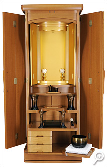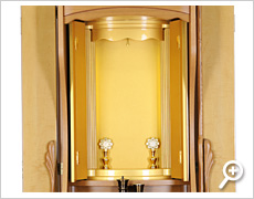 デザインに加え、ご本尊をより一層荘厳する採光厨子や大戸スライド、大型ハンドル、経机収納型を採用するなど、機能的で使い易さも抜群のお仏壇です。更にこちらのお仏壇は、日本国内で生産された国産仏壇となっておりますので、いつまでも末永くお使いいただける安心のお仏壇です。