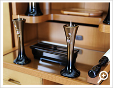 | ■ 機能 | 電動式厨子扉(オープン開き) / LED照明・彩光厨子 / 収納引き出し / 大戸スライド / 経机&リン収納型 |