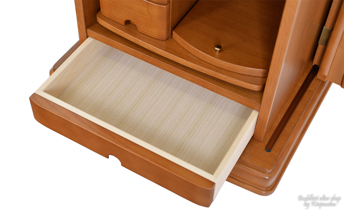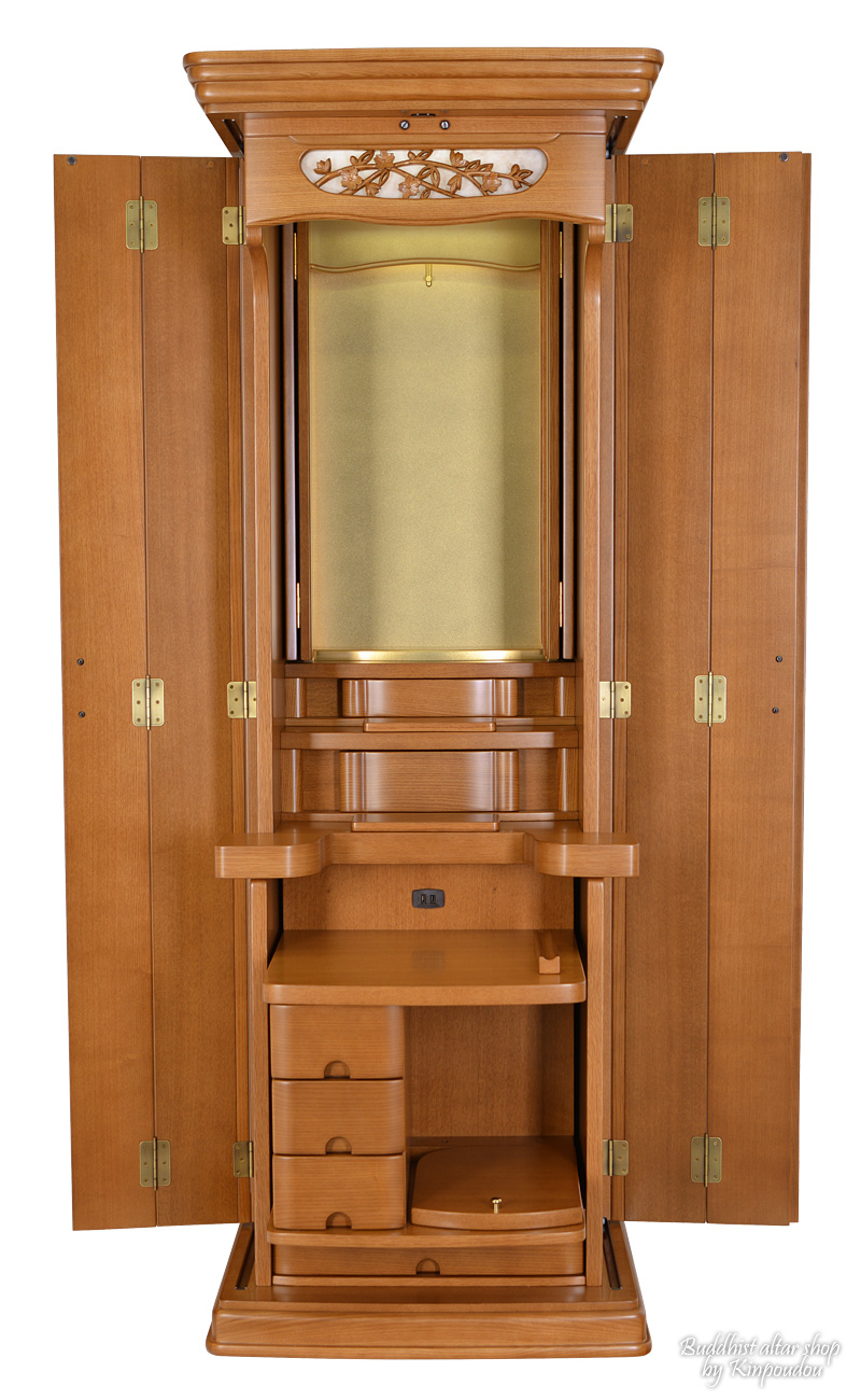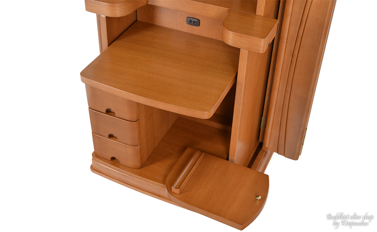 | ■ 機能 | 電動式厨子扉(内折式) / LED照明 / 大戸スライド式 / 花台スライド式 / 収納引き出し / 経机&リン収納型 |