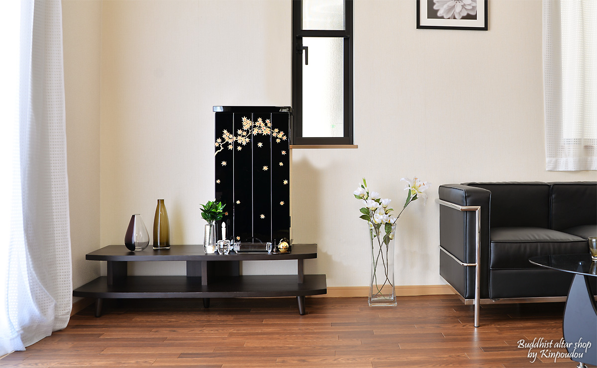 伝統的な蒔絵と現在の住宅事情に配慮したコンパクトさを合わせた、新しいスタイルの上置きコンパクト仏壇『フォーシーズン 紅葉』が登場しました。もちろん伝統的な蒔絵は日本の風流を感じさせております。