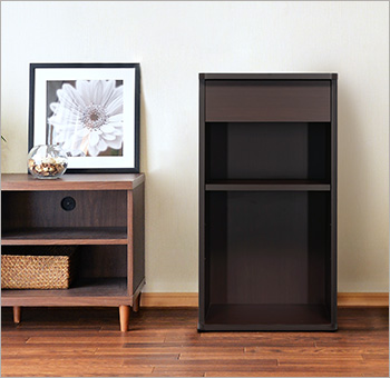 上置き仏壇専用の仏壇台です。洋室や和室にピッタリ合うモダンなデザインに、収納引き出しに加え、下部にはゆったりとした収納スペースが完備されております。上置き仏壇に入りきれないものを収納したり、お掃除用具や大きめの物まで収納が可能で整理整頓することで毎日の勤行も快適に行えます。
