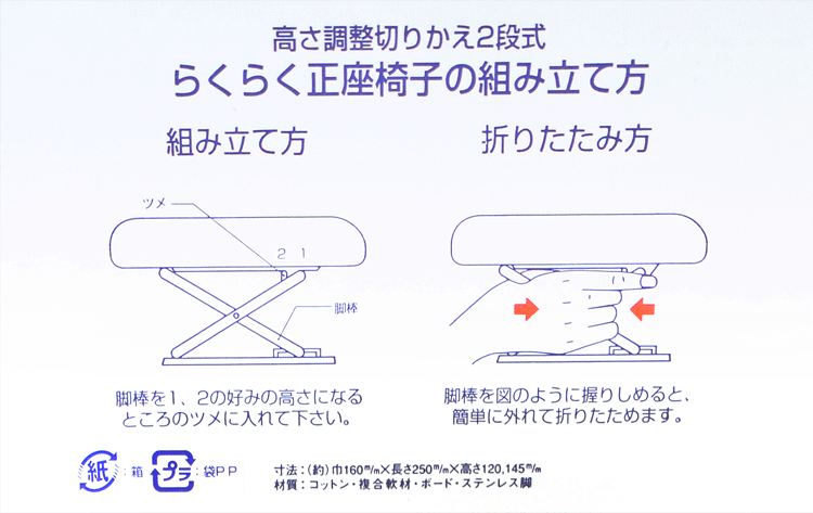 らくらく正座椅子 えくぼ2段式 黒・赤